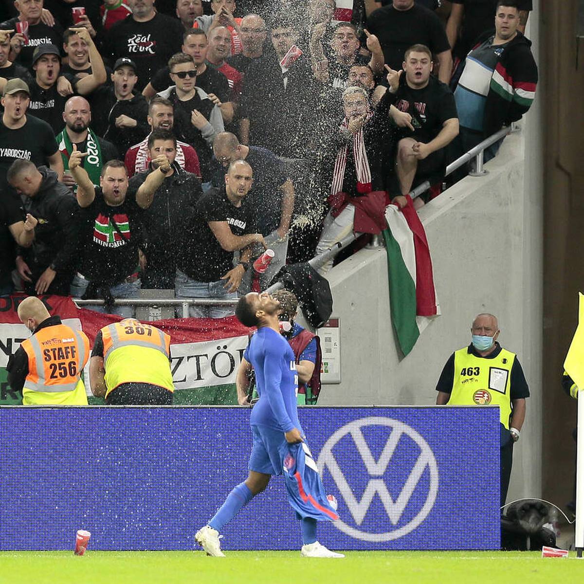 Die Ungarn-Fans sind nicht begeistert. Raheem Sterling traf für England in Budapest. England-Profis in Ungarn rassistisch beleidigt Budapest dpa - Die englischen Fußball-Nationalspieler Jude Bellingham und Raheem Sterling sind.